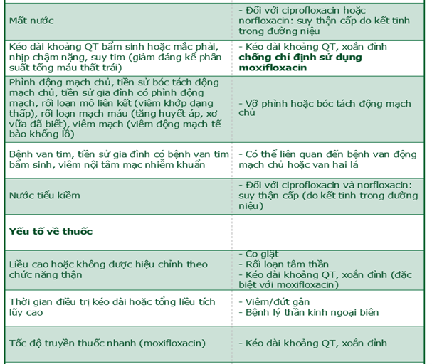 1. Các yếu tố nguy cơ dẫn đến tác dụng bất lợi liên quan đến fluoroquinolon