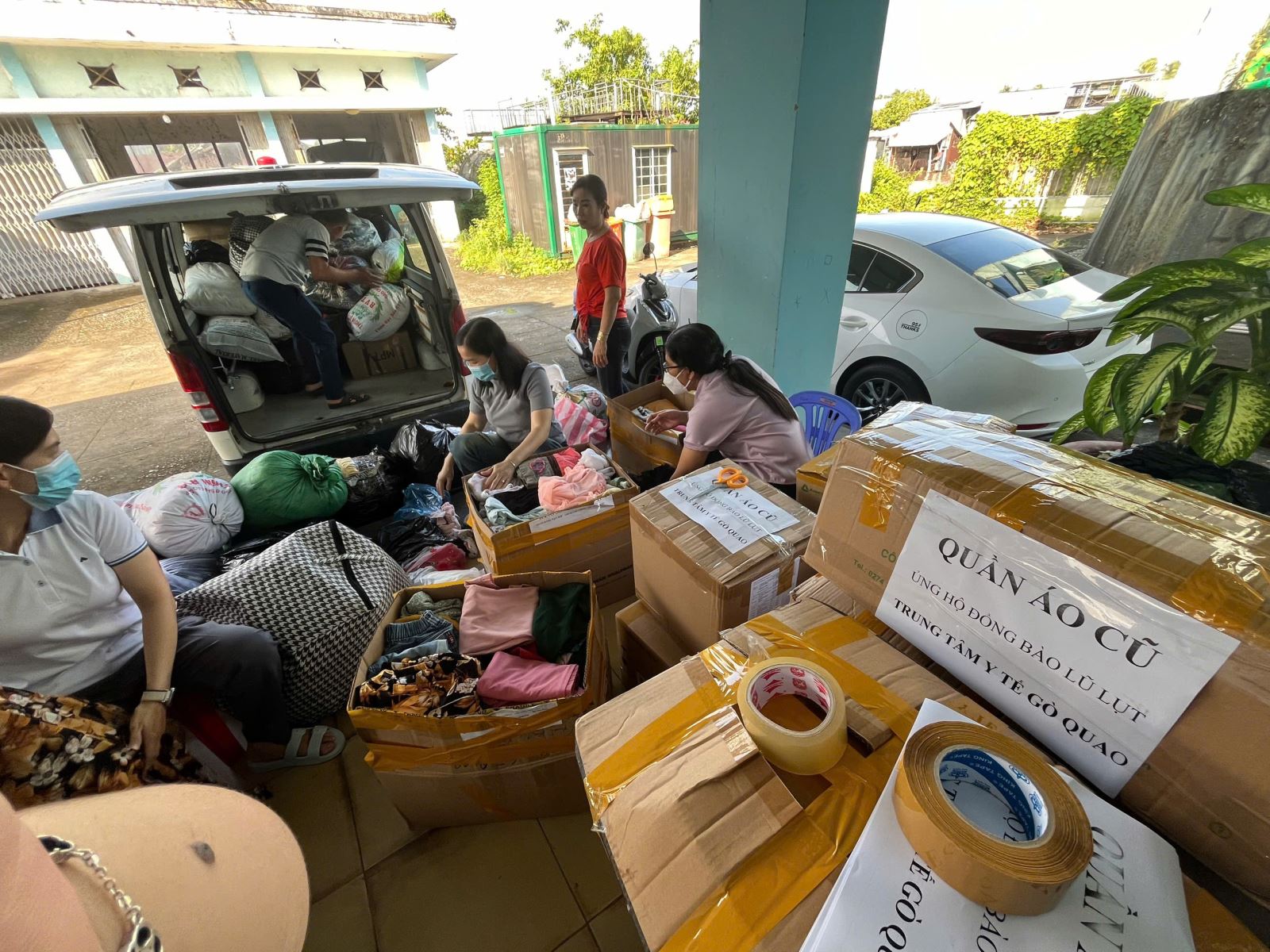 Tất cả hàng viện trợ với tổng số khoảng 5 tấn quần áo, 178 thùng mì gói, 830 ký gạo, 3 thùng nước tương, 7 thùng sữa, Trung tâm Y tế phải bố trí xe tải vận chuyển 4 chuyến đến Sở Y tế tỉnh An Giang, đến khoản 21 giờ mới đã xong nhiệm vụ.