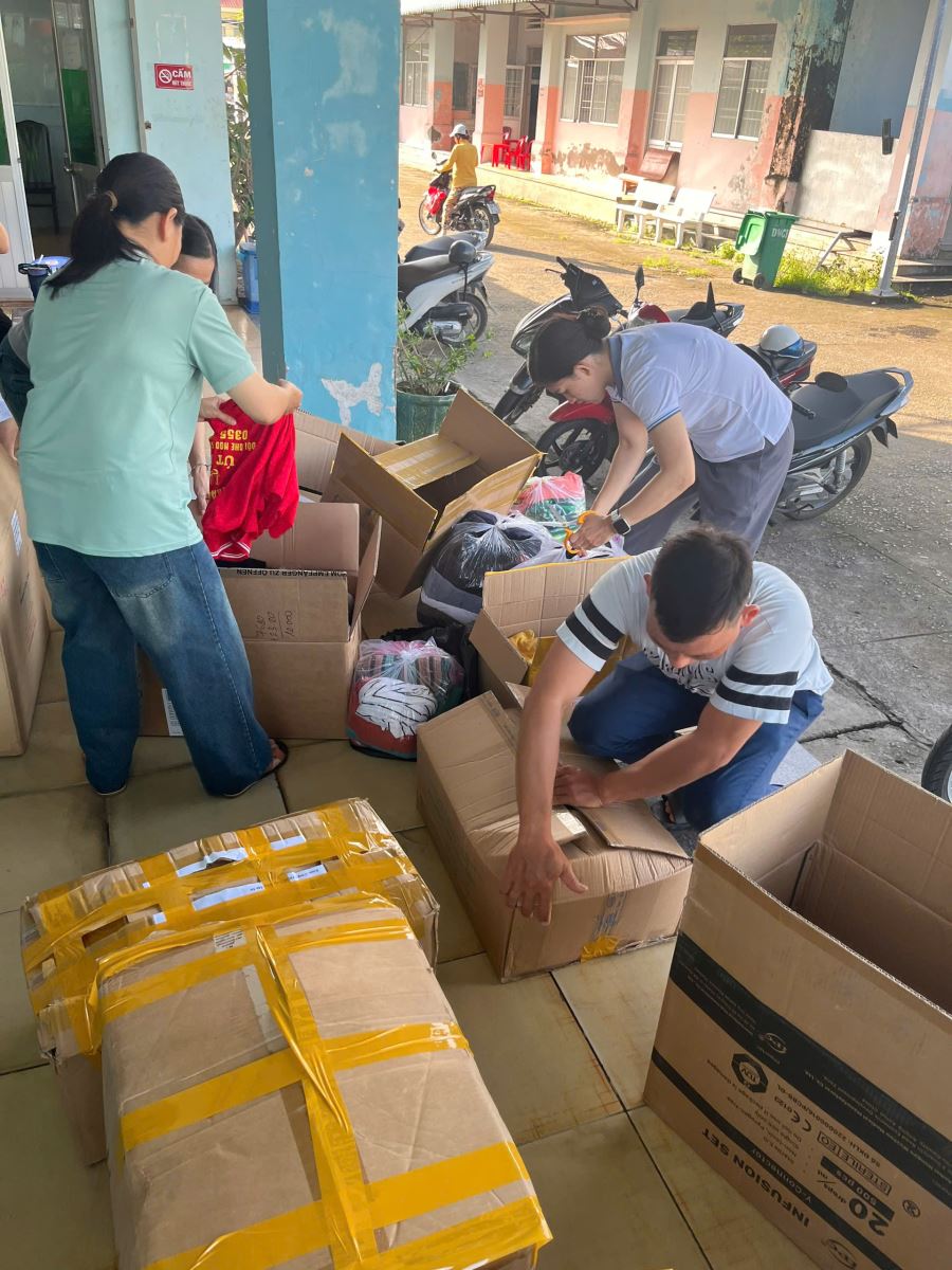 Trên tinh thần đó, từ sáng sớm ngày 24 tháng 11 năm 2025 đến chiều tối, nhiều viên chức, người lao động, người dân tắp nập vận chuyển hàng viện trợ đến tại Khoa Dược để viện trợ, với Tinh thần "một miếng khi đói bằng một gói khi no", với mong muốn góp chút tấm lòng chung tay với bà con vùng lũ lục vượt qua khó khăn.